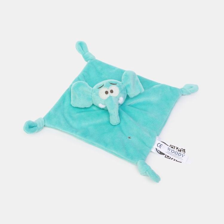Blauw knuffeldoekje van velours met olifant