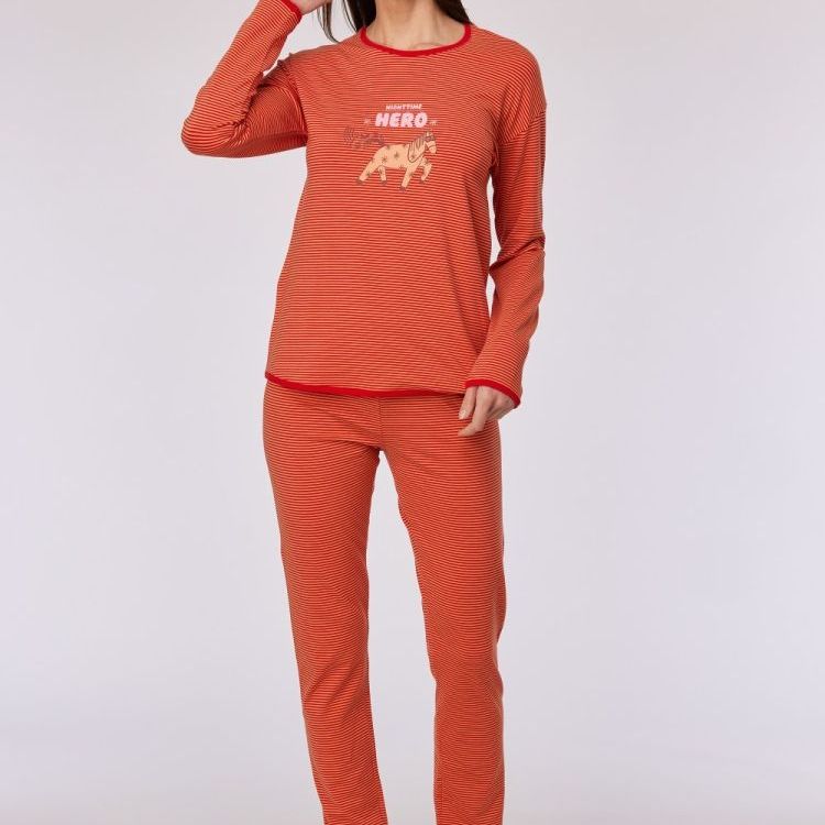 Rood gestreepte pyjama in katoen met pony