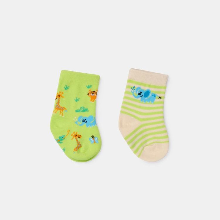 261-10-SOL-I/030Kleurrijke set van twee paar sokken van fijn katoen. Beide sokken hebben een dierenprint. Verkrijgbaar in de maten 0-6m tot 43-46.