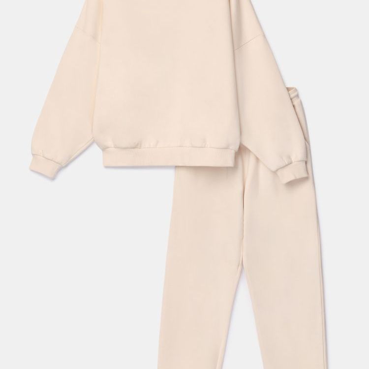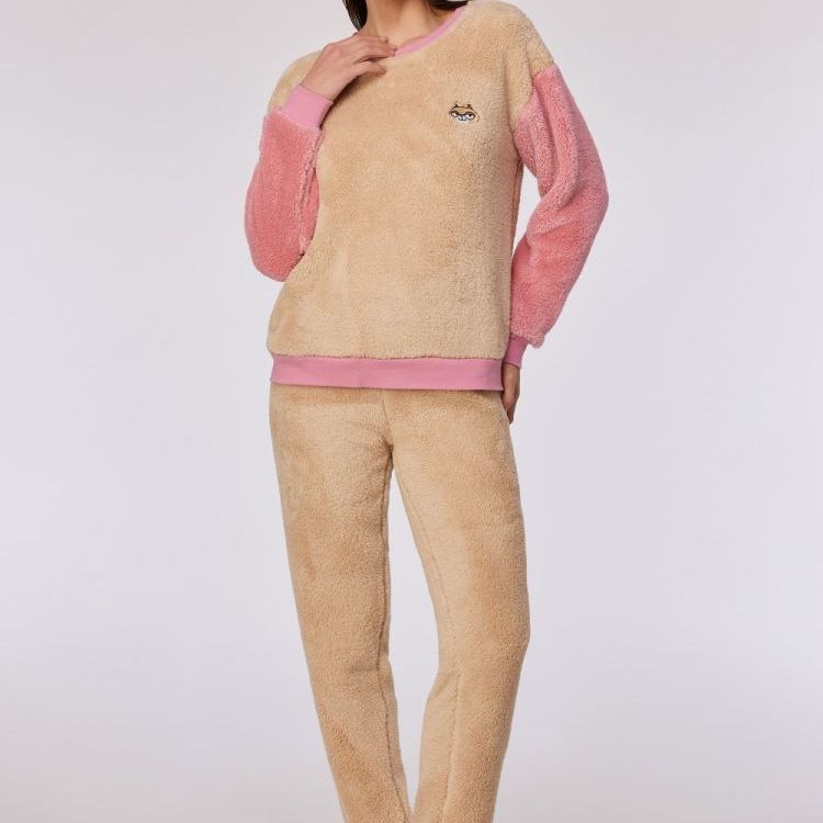 Gestreepte pyjama in velours met blauwgrijze broek en kat
