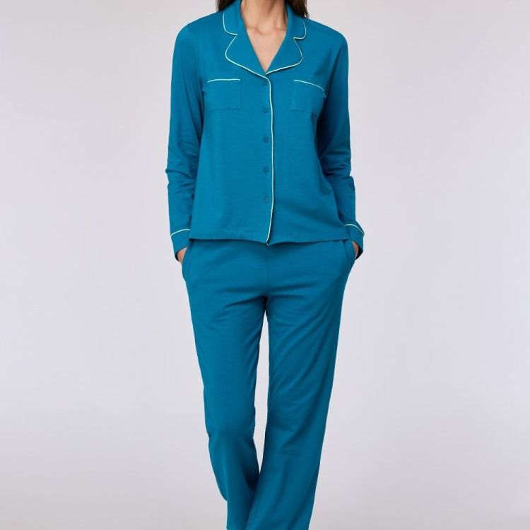Donkergroene pyjama in katoen met contrastmouwen en -broek