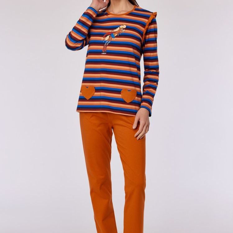 Donkerrode pyjama met sweater en broek met ponyprint in rekbaar katoen