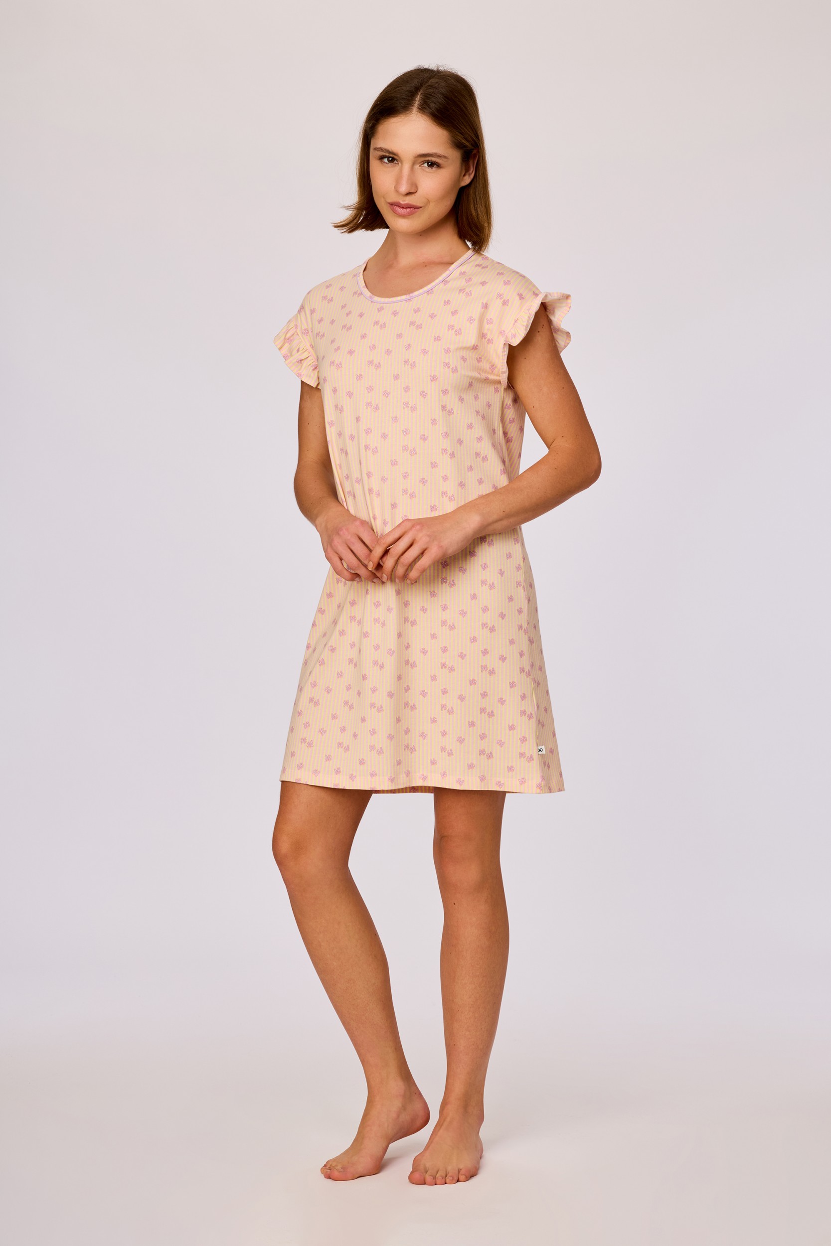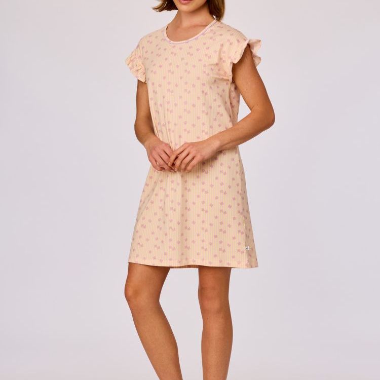 Geel-paars gestreepte slaapkleed van soepel katoen