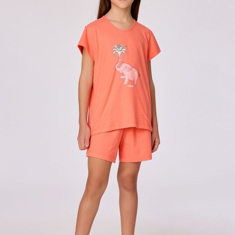 Geel slaapkleed van soepel katoen. Dit korte slaapkleedje heeft uitwaaierende korte mouwen. De blikvanger is de grote dierenprint. Deze speelse print licht op in het donker. Verkrijgbaar in maten 2Y-XXL.