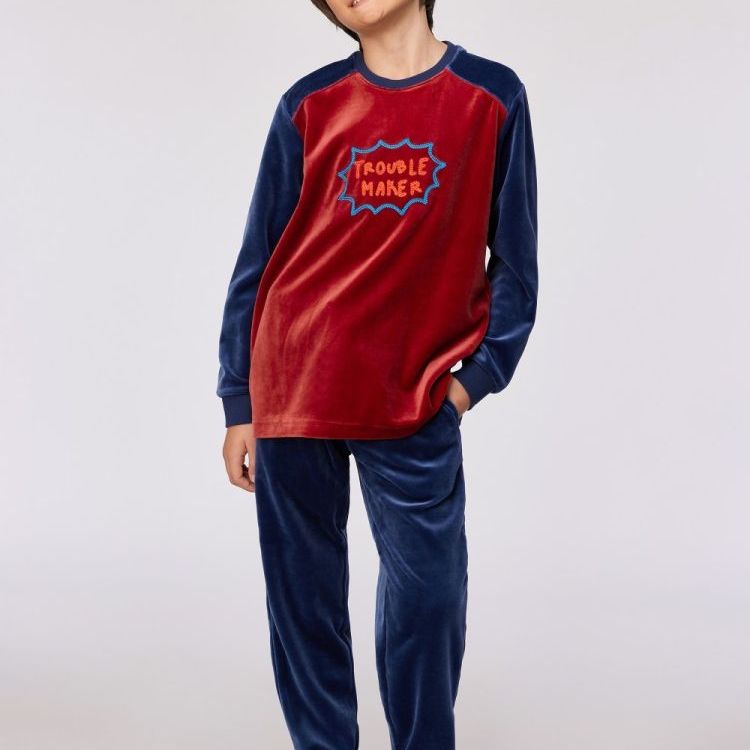 252-10-PDV-V/920Gele pyjama van velours. Zowel het bovenstuk als de broek hebben een kattenprint. Verkrijgbaar in de maten 24m/2y-XXL. Voor de maten 24m/2y-8y is er een sluiting in de rug voorzien.