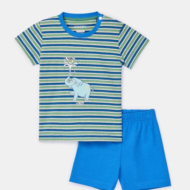 Deze groen-wit gestreepte doorknooppyjama heeft korte mouwen en een klassieke kraag. De fijne verticale strepen geven de pyjama een klassieke en tegelijk moderne uitstraling. De bijpassende short heeft een elastische taille en handige zakjes. Beschikbaar in maten 2Y - XXL.