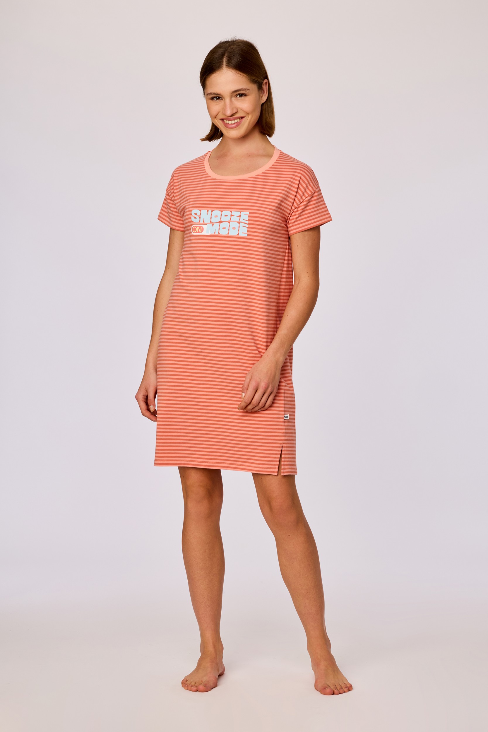 Kleurrijk slaapkleed van soepel rekbaar katoen. Dit model met korte mouwen komt tot boven de knie. Van 2Y tot 16Y heeft dit slaapkleed een olifant print op de borst, van XS tot XXL staat het opschrift 'Snooze mode' .
