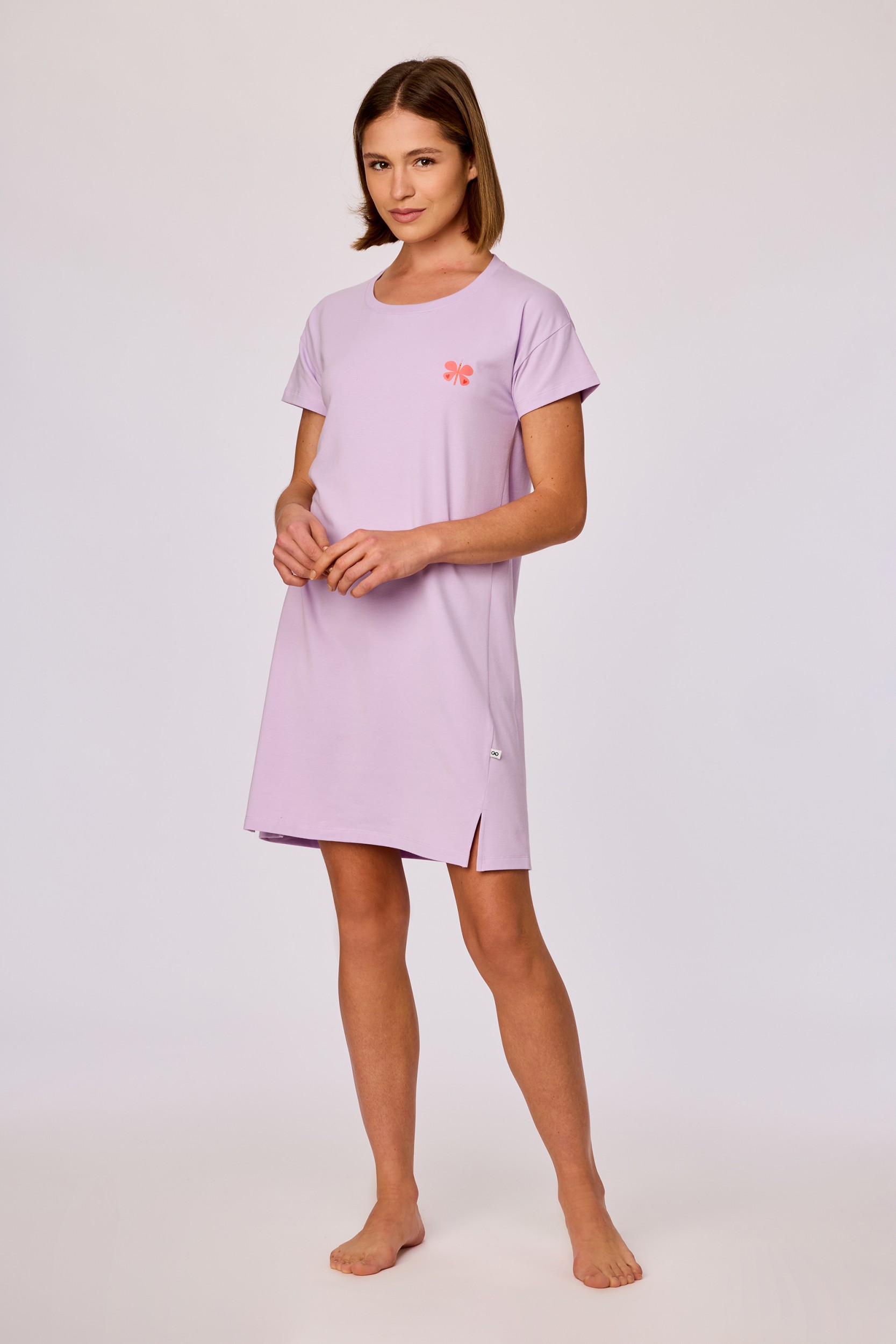 261-10-DZA-Z/312Lila slaapkleed van soepel rekbaar katoen. Dit model met korte mouwen komt tot boven de knie en heeft een vlinderprint op de borst. Verkrijgbaar in de maten 2Y-XXL.