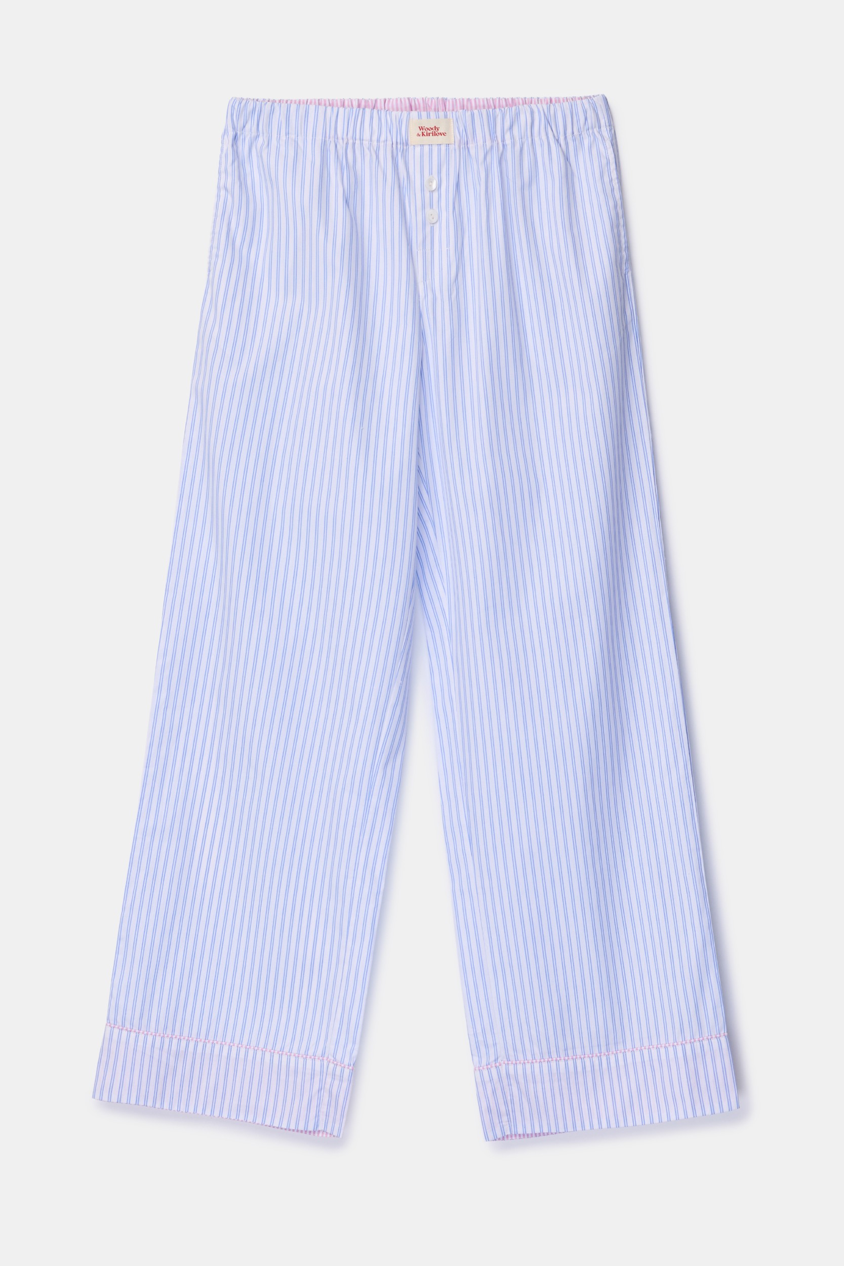 -10% Meisjes-damespyjama, lange broek, blauwe streep
