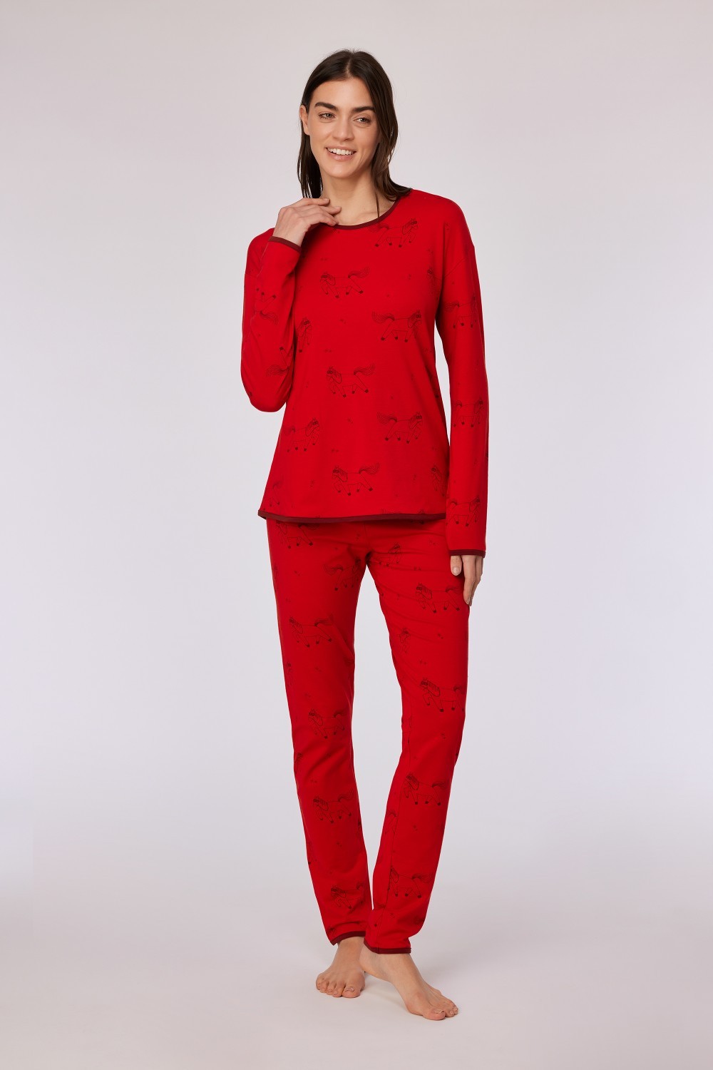 252-10-PZG-Z/934Rode pyjama van soepel katoen. De pyjama is volledig bedrukt met een ponyprint, zowel op het bovenstuk als op de broek. Verkrijgbaar in de maten 24m/2y-XXL. Voor de maten 0m-8y is er een sluiting in de rug voorzien.