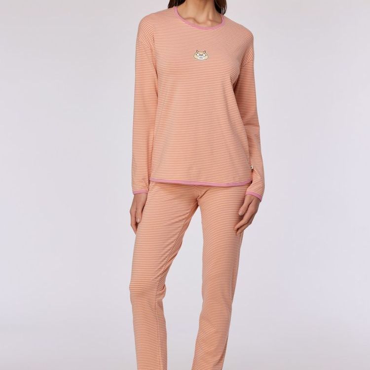 Roze-geel gestreepte pyjama in katoen