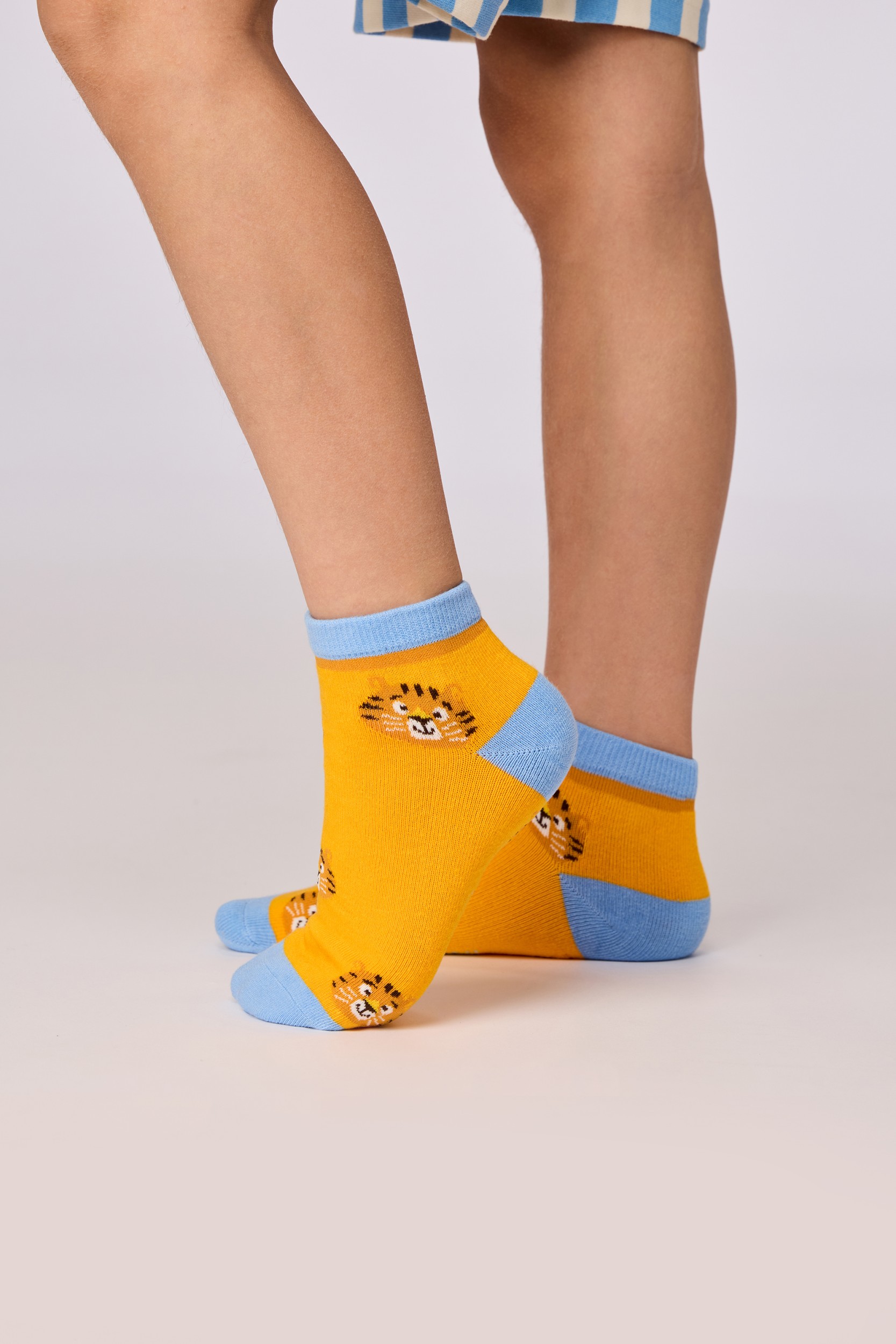 261-10-SOA-I/020Kleurrijke set van twee paar korte sokken van fijn katoen. Beide sokken hebben een tijgerprint. Verkrijgbaar in de maten 0-6m tot 43-46.