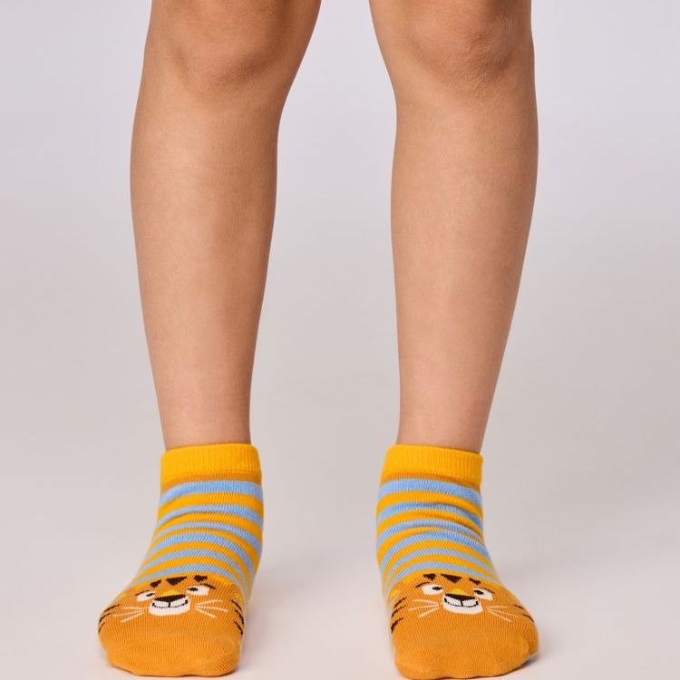 261-10-SOD-I/829Lichtblauwe set sportsokken van fijn katoen. De sokken hebben een geel detail en tekst ter hoogte van de enkels. Verkrijgbaar in de maten 23-26 tot 43-46.