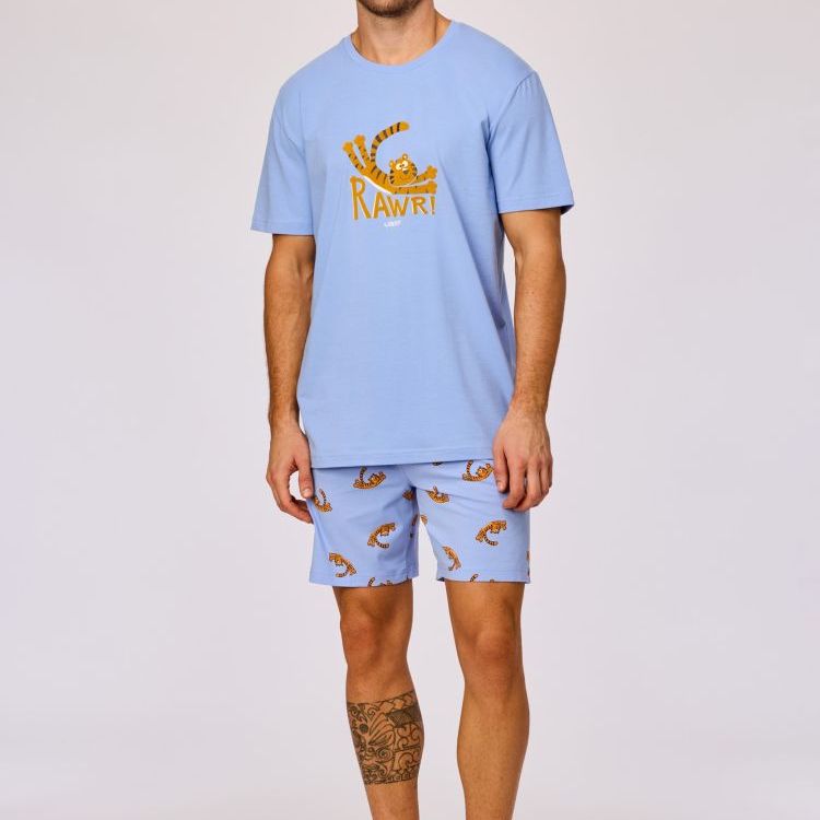 Donkerblauwe zwemshort van geweven katoen met haaienprint