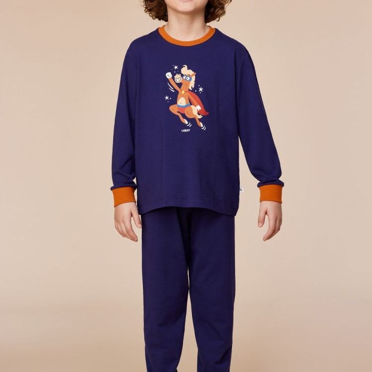 Donkerblauwe pyjama in katoen met pony