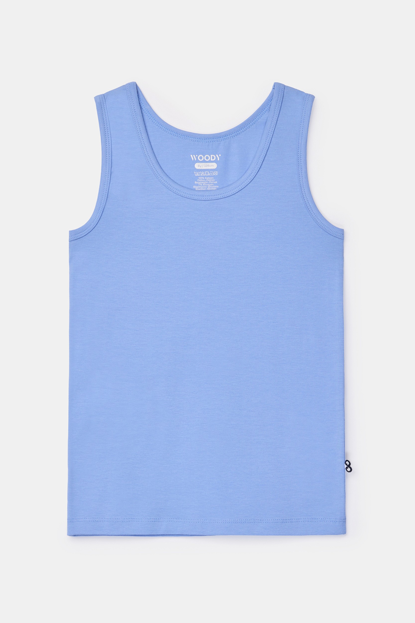 Blauwe Woody singlet voor jongens in soepel en rekbaar katoen. Verkrijgbaar in maten 2Y-16Y.