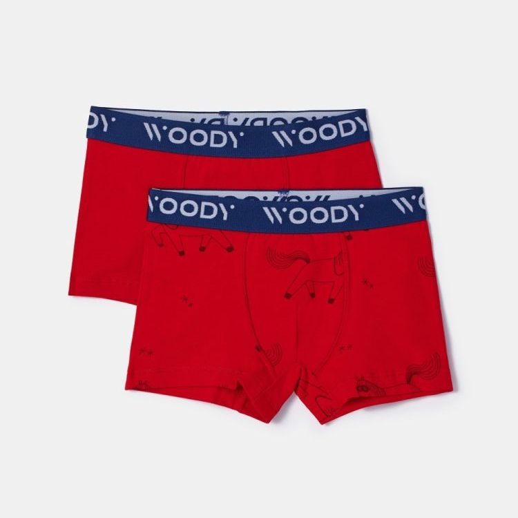 Set van twee boxershorts in stretch katoen. Eén boxershort in groenblauw en de ander met duivenprint. De boxershorts zijn verkrijgbaar in de maten 24m/2y-16y.