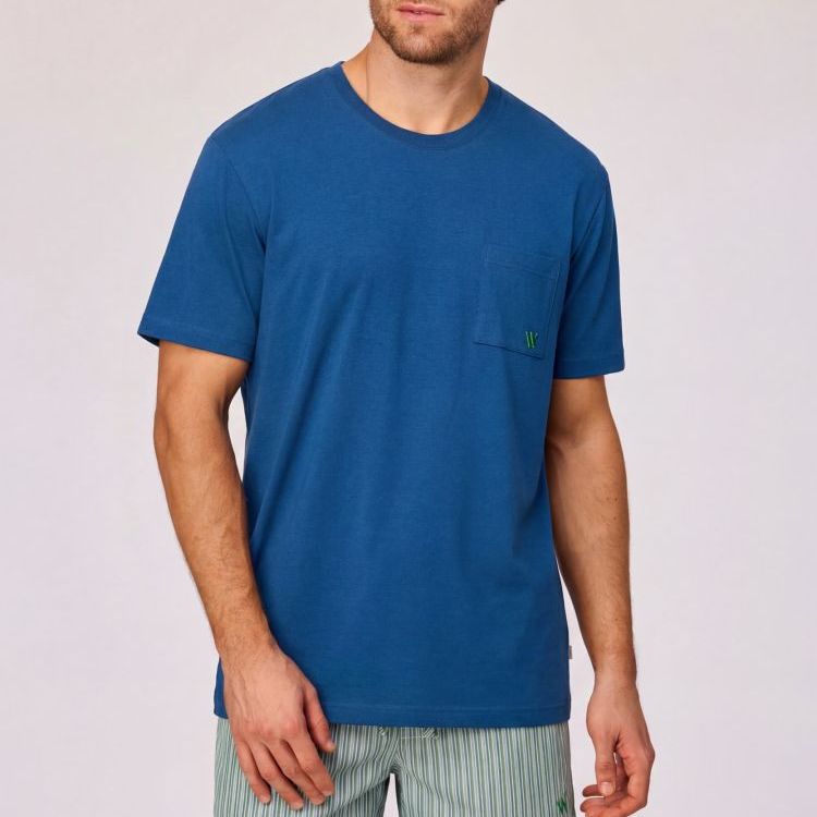 Deze gebroken witte jongens en heren pyjama van rekbaar katoen bestaat uit een T-shirt met korte mouwen en een ronde hals, gecombineerd met een blauwe short. Het T shirt is voorzien van een kleine borstprint en heeft een rechte pasvorm. De short heeft een elastische tailleband met aantrekkoord en een rechte pijpafwerking. Beschikbaar in de maten 2Y-XXL.