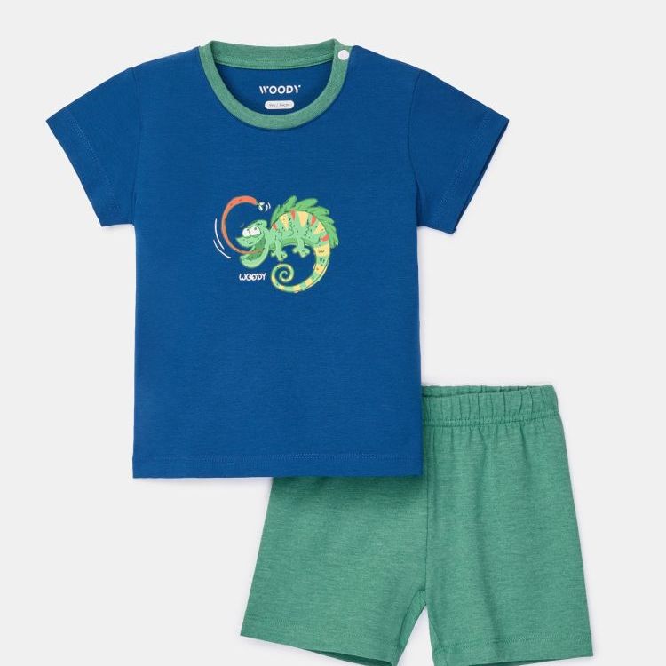 Groen-blauwe pyjama van soepel katoen
