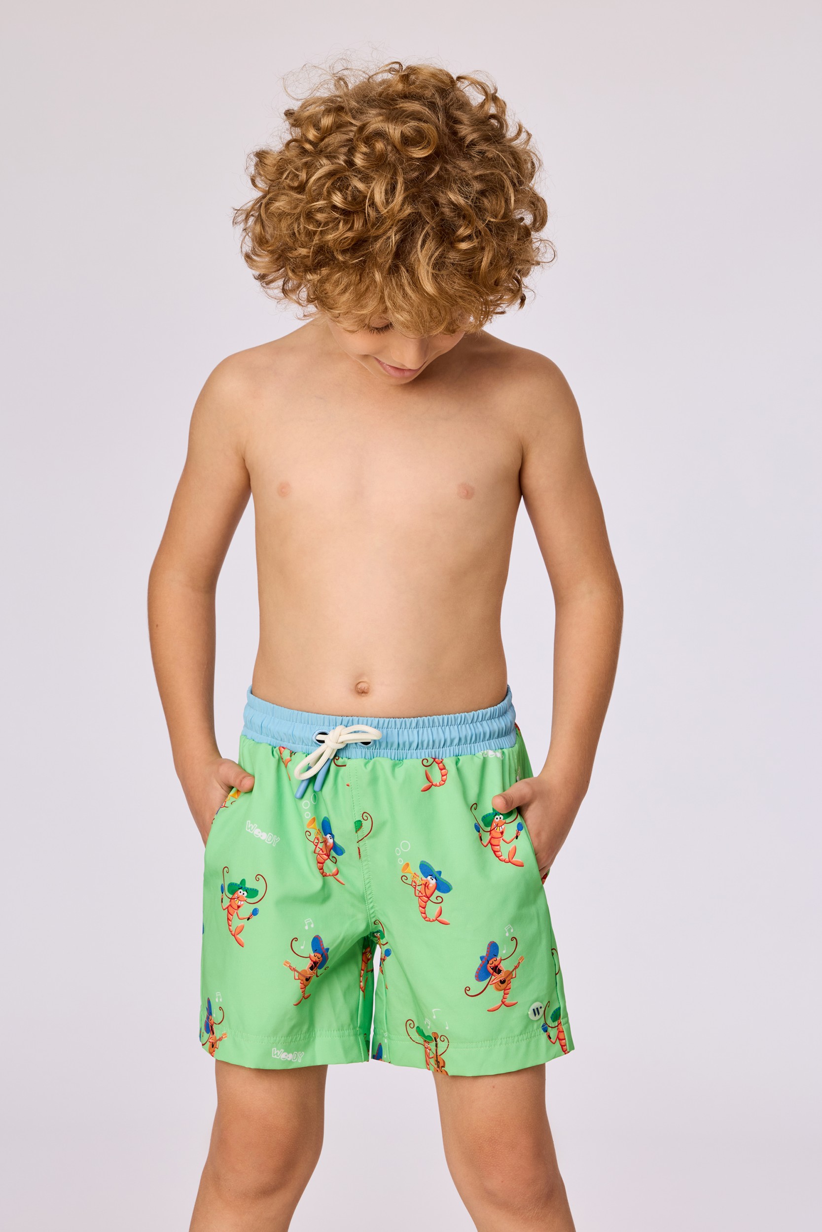 261-10-QWW-W/935Zwemshort voor jongens en heren uitgevoerd in groen met een all over garnalenprint. De short heeft een elastische tailleband in contrasterend blauw met een trekkoord. Het model heeft een rechte pijpafwerking. De zwemshort is voorzien van steekzakken aan de zijkant en een achterzak. Beschikbaar in de maten 2Y-XXL.