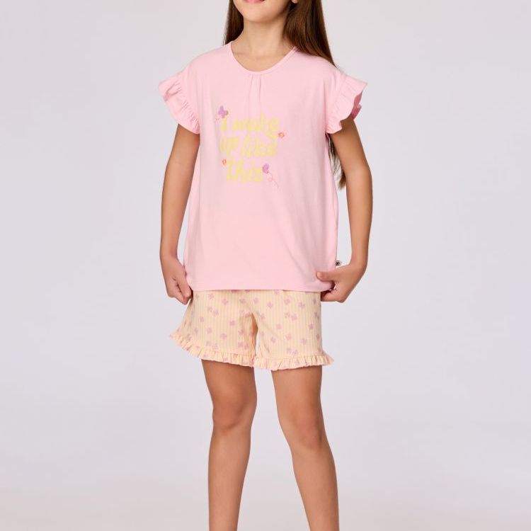 Geel-roze pyjama van soepel katoen