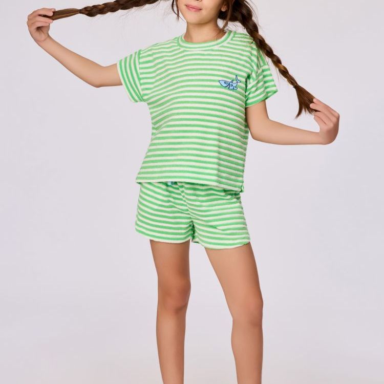 Groen-wit gestreepte set van badstof