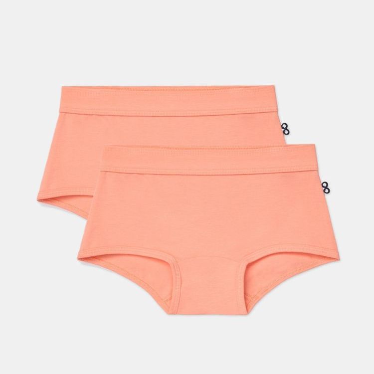Set van 2 perzikoranje shorty onderbroeken van rekbaar en soepel katoen. Verkrijgbaar in maten 2Y-16Y.