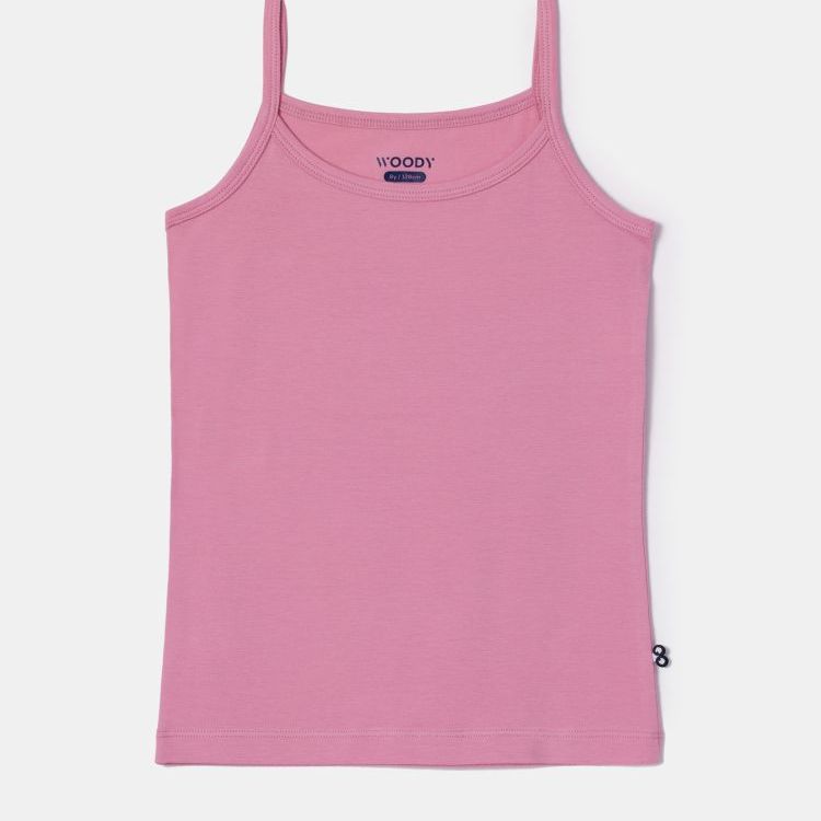 252-10-VEG-Z/404Woody singlet met spaghettibandjes voor meisjes in soepel en rekbaar katoen. Dit roze onderlijfje draag je onder een trui, T-shirt of pyjama. Verkrijgbaar in de maten 24m/2y-16y.