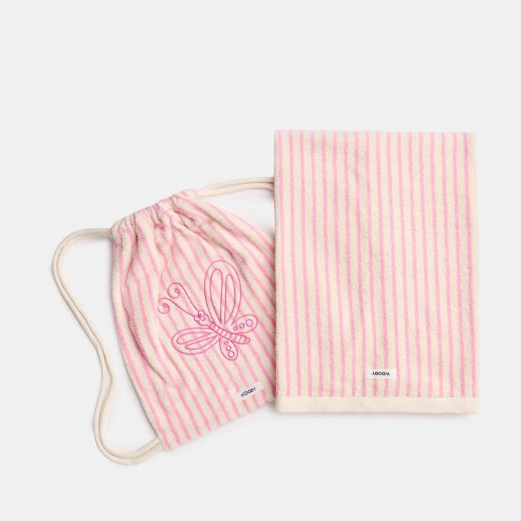 Roze-wit gestreept zakje van badstof